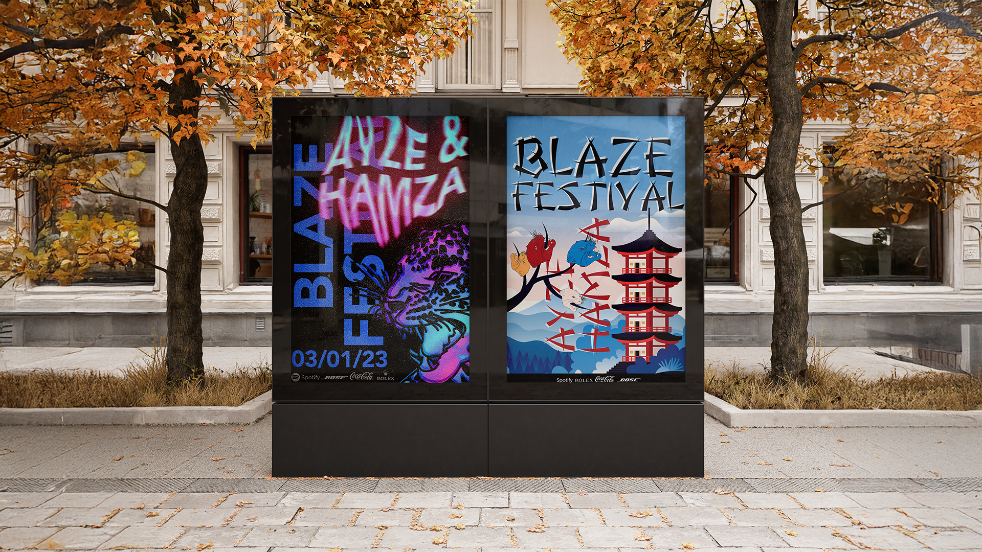 Voici une sélection d’affiches réalisées pour différents projets de communication visuelle, du festival aux campagnes événementielles. Chaque visuel répond à une direction artistique spécifique, mêlant typographies impactantes, compositions dynamiques et palettes de couleurs affirmées.