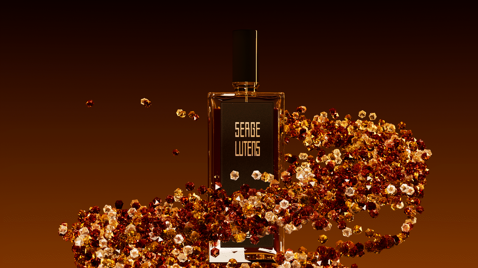 En utilisant Cinema 4D, mon objectif était de créer une atmosphère forte reflétant le caractère ambré de la fragrance. À travers une palette de noirs profonds et d'oranges vibrants, j'ai cherché à capturer à la fois la chaleur et l'aura énigmatique du parfum. Pour souligner l'élégance et la rareté, j'ai également introduit des éléments de diamant, ajoutant un éclat raffiné qui sublime le récit visuel.
